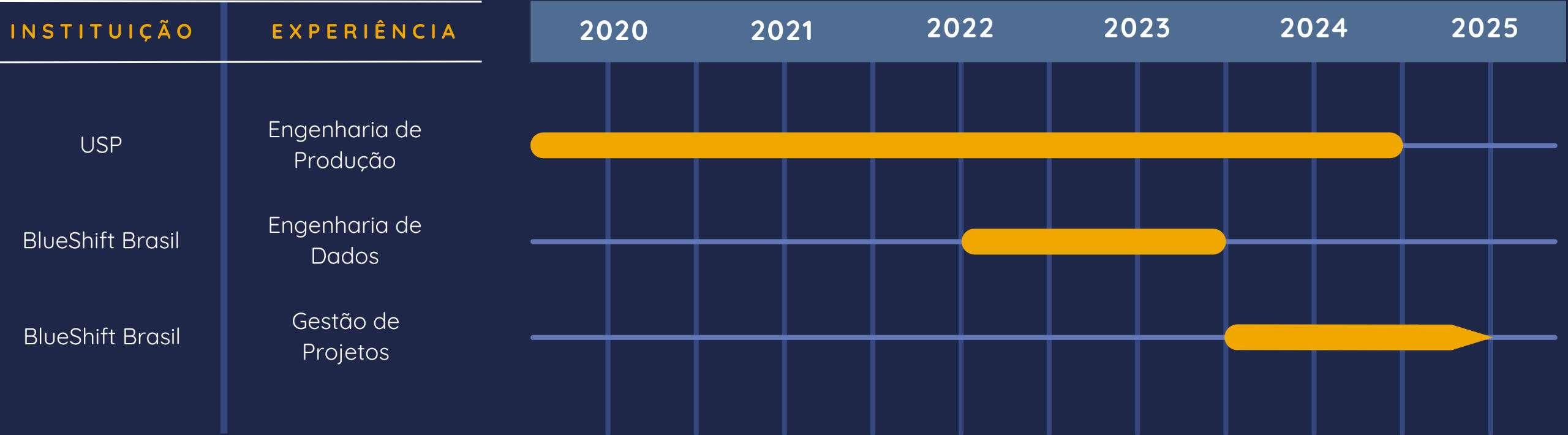 Aproveite para conhecer as experiências que moldaram minha trajetória na gestão estratégica de projetos.